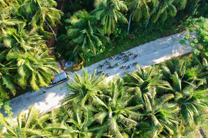 酒店早餐以后,直接是兴隆绿道骑行,兴隆绿道两边都是茂密的热带雨林植物,兴隆绿道是政府专门为国内三大自行车赛事海南环岛赛路段,路上几乎没有机动车辆同行,骑行至第三代侨民家里,进行侨民家访,品尝侨民自己亲手种植的咖啡和制作的糕点,之后驱车前往陵水清水湾尽头的新村镇,这里也是一个疍族人群的聚集地,这里的人被称为海上吉普赛人或者海上牧洋人。