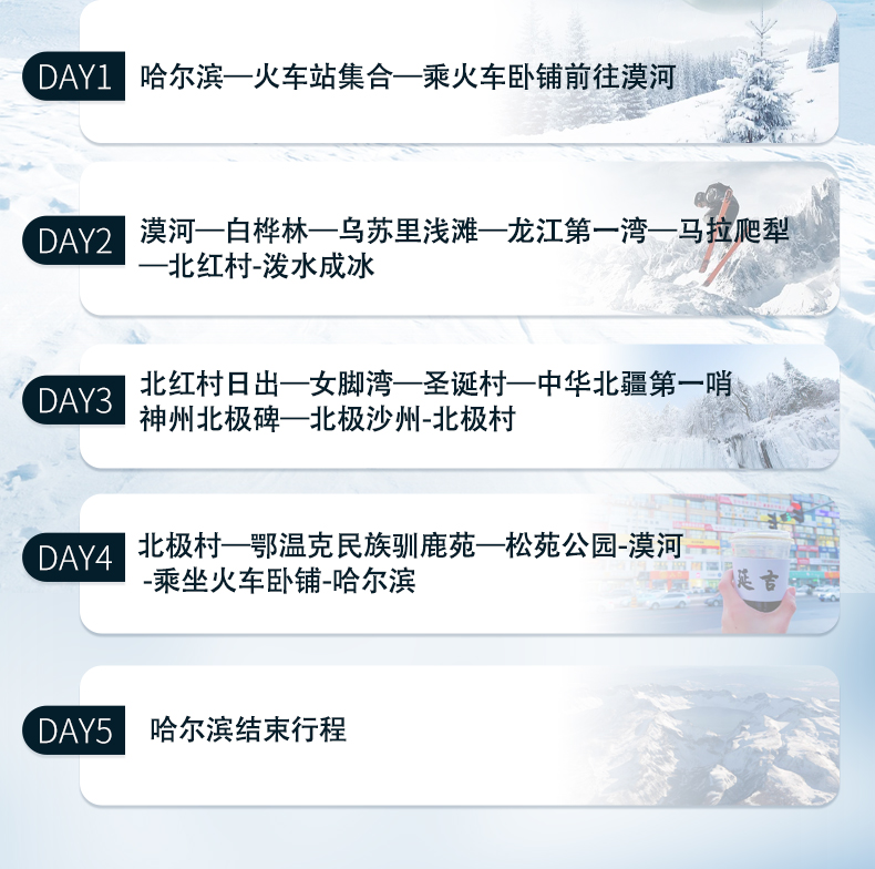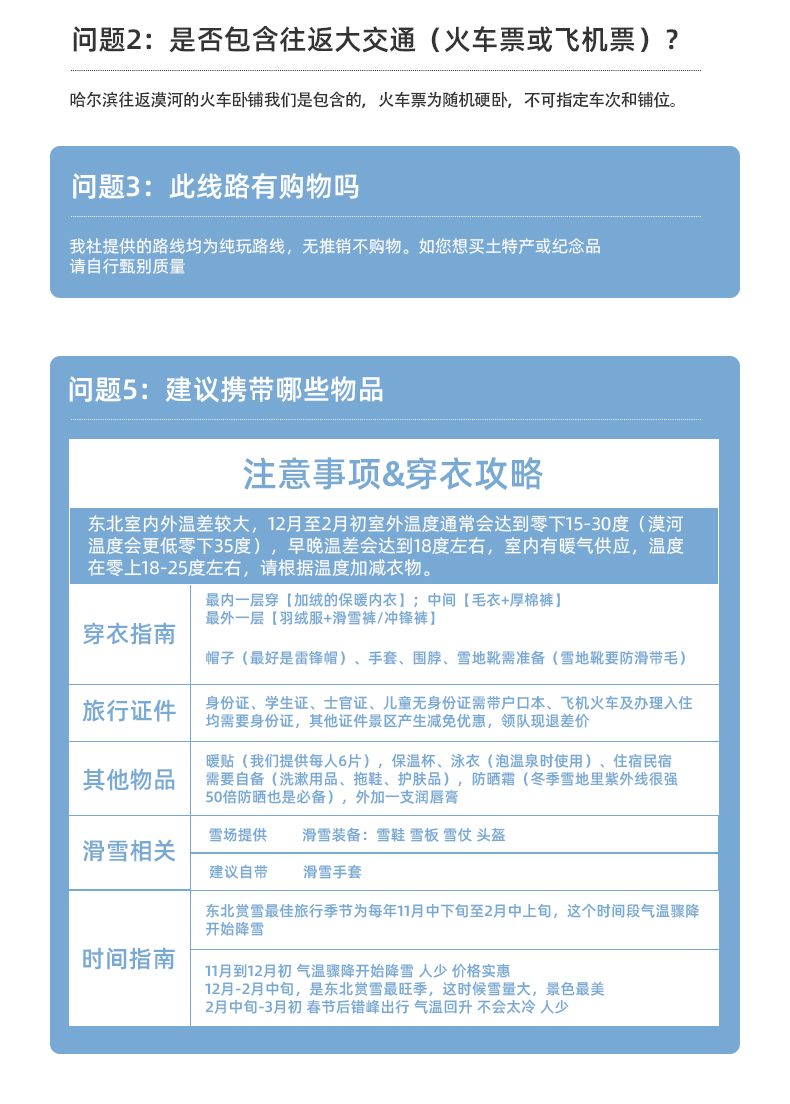 3.火车到达哈尔滨即为散团时间,可自行选择交通方式离开。