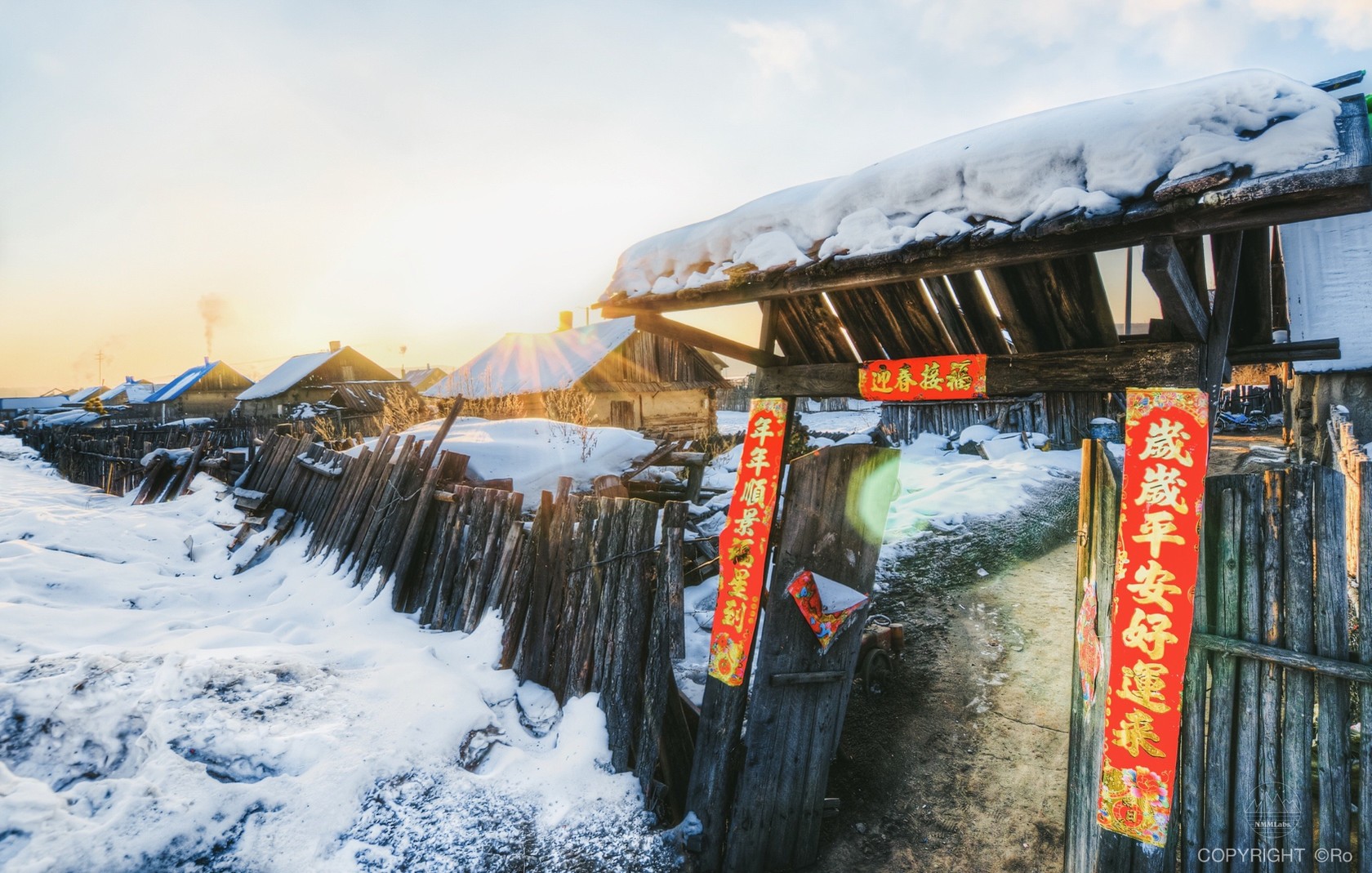 15:00参观过后,我们出发前往与北极村一字之差的【北红村】,是真正的地理最北村落,一个原汁原味的俄罗斯民族村,保留了原始的村庄面貌和地道的东北生活。北红村很小,一条长长的路穿越整个村子,木栅栏围着原始的木刻楞房屋。茫茫白雪里透着暗黄色的木屋,远看就如梦幻的荷兰小乡村