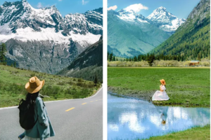 早餐后酒店集合出发,前往红海子,沿着公路下来可以看到一个红海子的观景台这里能看到景区的全景如果想更加靠近雪山。我们顺着公路往下走,就可以看到一条最美的网红机场路-康定彩虹公路。