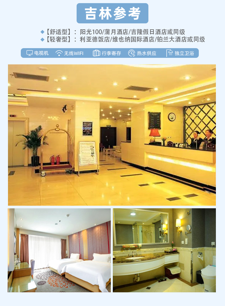 参考酒店:宝石国际酒店/金水鹤国际酒店/观景温泉酒店或同级