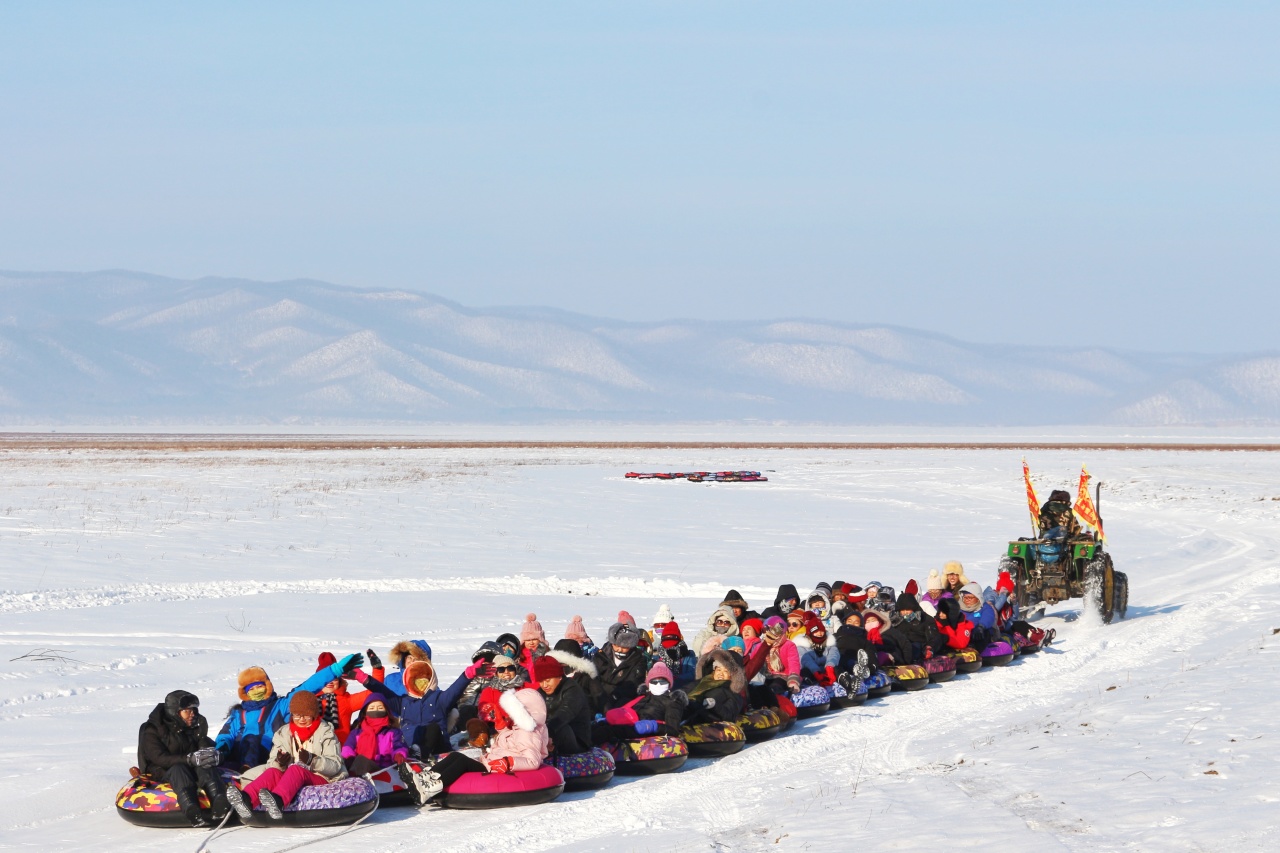 【冰雪欢乐场】镜泊湖冰面上俱乐部独家赠送冰雪滑梯、雪滑梯、抽冰尜等娱乐活动