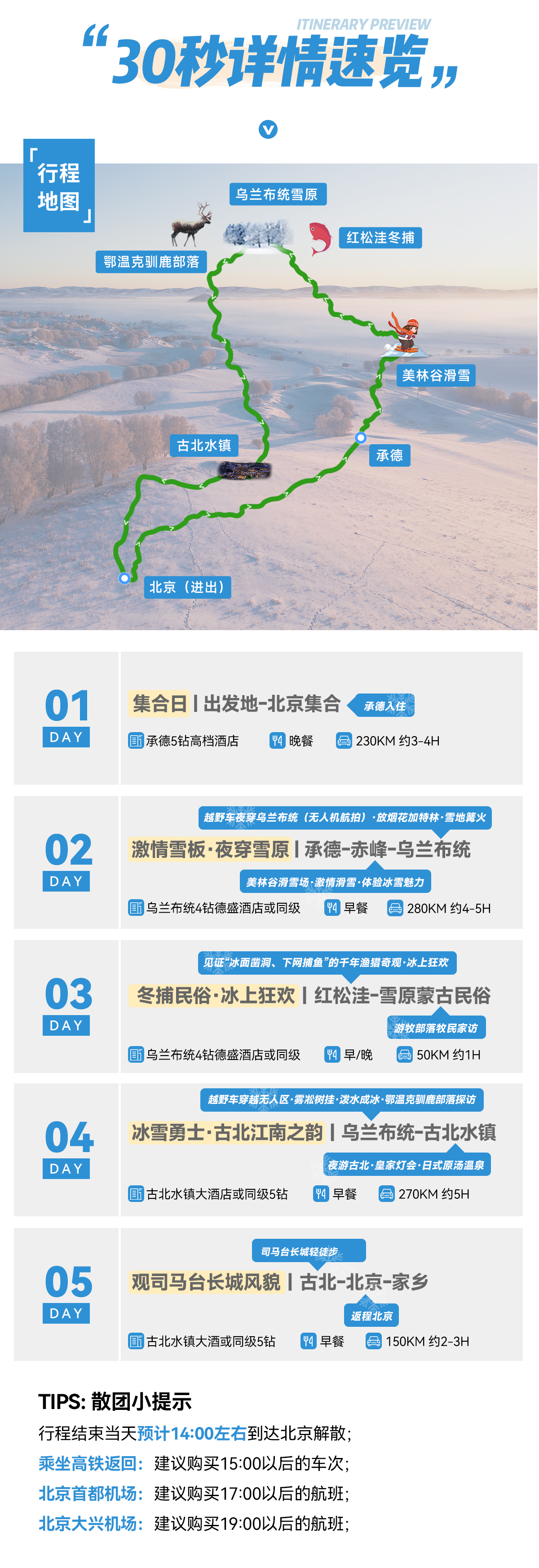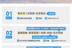 3、门票:乌兰布统、塞罕坝、蛤蟆坝往年冬季不收费,如需收费请自理;