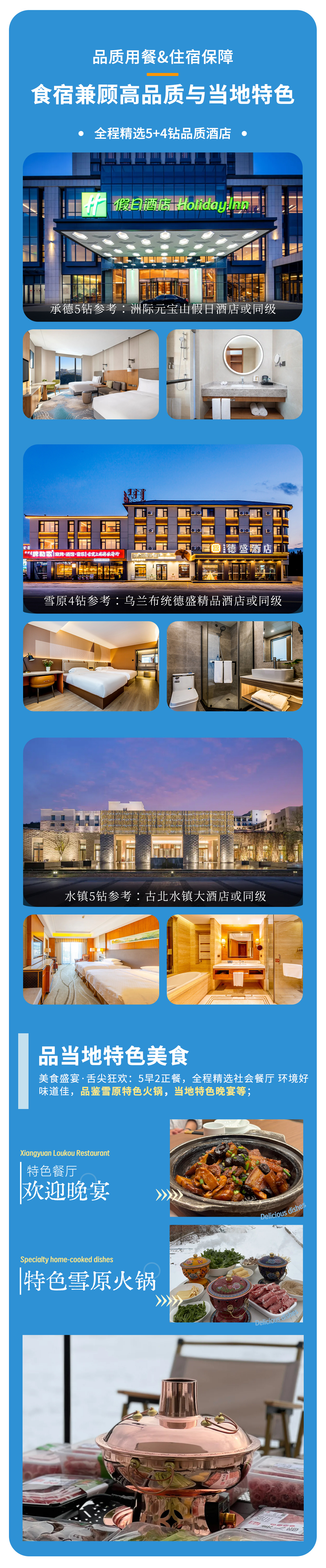 住:承德5钻酒店(参考洲际元宝假日酒店或同级);