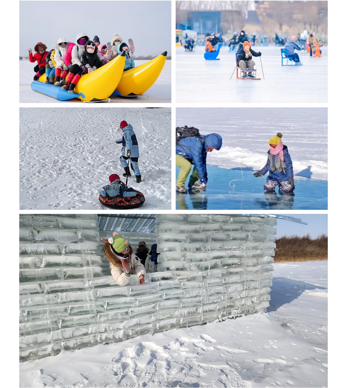 【N种冰雪玩法】硬控南方人的冰雪体验,全是「北方限定」,冰上香蕉船、车拉雪圈、冰车、冰陀螺、冰上保龄球、冰屋拍照、滑雪圈,享受纯粹的冰雪乐趣。