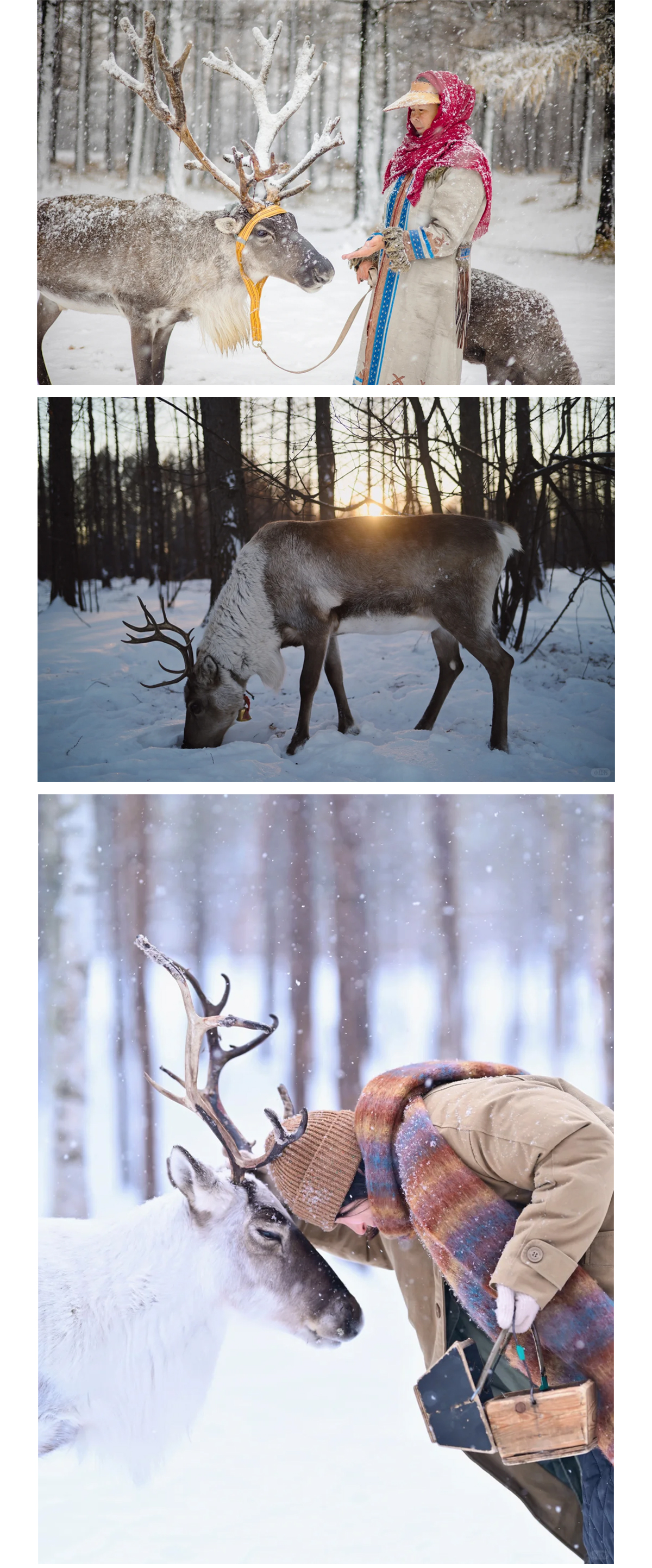 大家可以零距离接触圣诞老人座驾—“四不像”驯鹿及与各种小动物接触,在这里我们探访古老的民族,和驯鹿亲密接触,给他们喂食。感受这支从原始部落直接转为社会主义的部落。