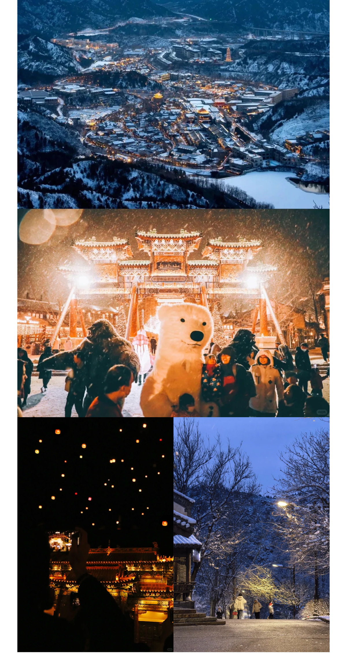 Tips 小贴士:古北水镇景区会根据不同节日时段举办不同特色的游园活动:12月古北圣诞季、1月喜迎元旦、2月春节、古北过大年—各种的春节庙会、冰灯游园等,这是一个来了不想走、走了还想来的地方,大家一定要好好体验。